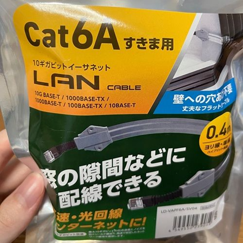 LANケーブル類はCat6A対応のもので揃えてみました。(まぁうち…1Gbpsの契約なんですけどね…)