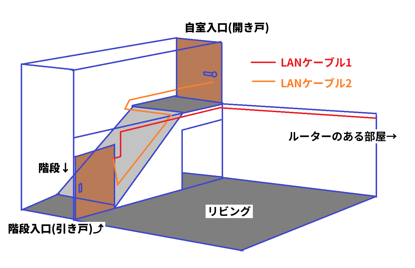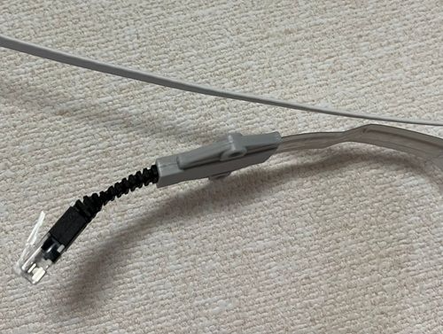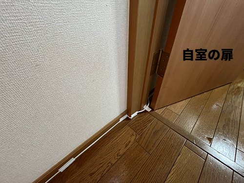 ですが屋内の扉を通すだけならフラットタイプのLANケーブルで十分だし、柔軟性もこちらの方が上でした。